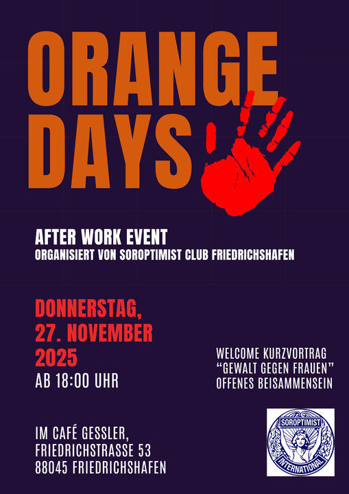 Wir Club Soroptimist Friedrichshafen laden am 27. November 2025 ab 18 Uhr herzlich zum After-Work-Event